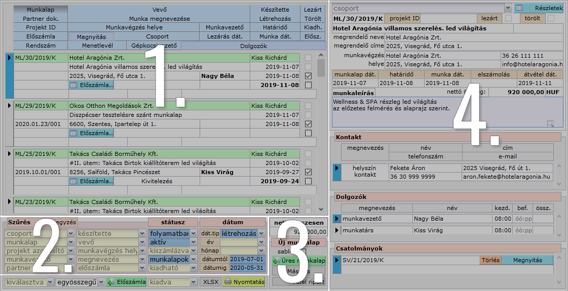 Ezek a munkalapok szolgálnak a munkavégzések és szolgáltatok kiadására.
