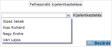 A legördülő listát megnyitva csak az aktuálisan bejelentkezett felhasználókat látjuk. Amennyiben a listában nem látjuk a nevét, nincs további teendőnk.