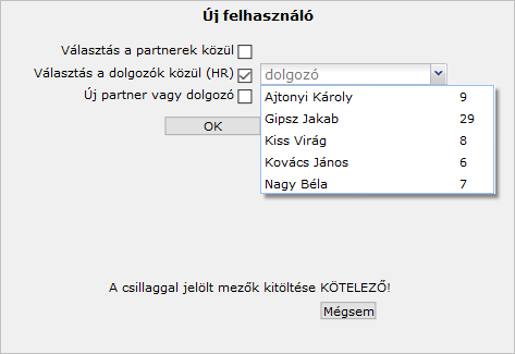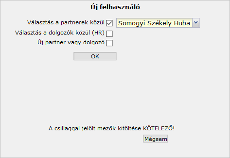 Fontos megjegyezni, hogy ebben a listában minden, a partner adatbázisunkba felvett magánszemély megjelenik. Körültekintéssel válasszuk ki a leendő felhasználót.