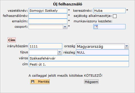 Szintén töltsük ki a csillaggal jelölt, kötelező mezőket. A mentés gombra kattintva két műveletet hajt végre a rendszer: