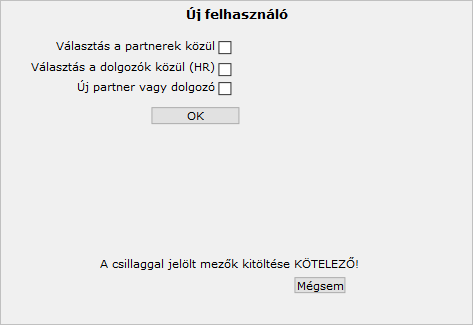 Ha a felveendő felhasználó nem csak a partnertörzsben, de a HR / dolgozók adatbázisában is szerepel, jelöljük be a középső jelölőnégyzetet.